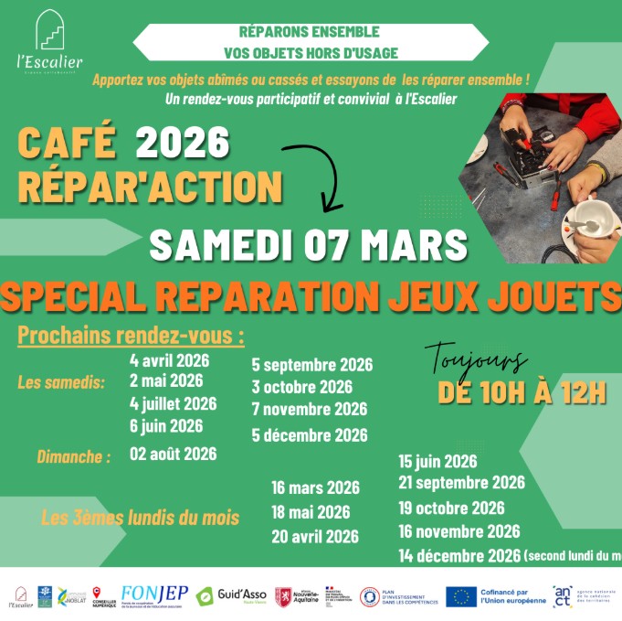 Dans le cadre de Saint Léo Festi'jeux et en partenariat avec les Joueurs De Noblat , L'Escalier - tiers-lieu miaulétou et ses bénévoles réparateurs proposent une matinée réparation spécial "Jeux et jouets".