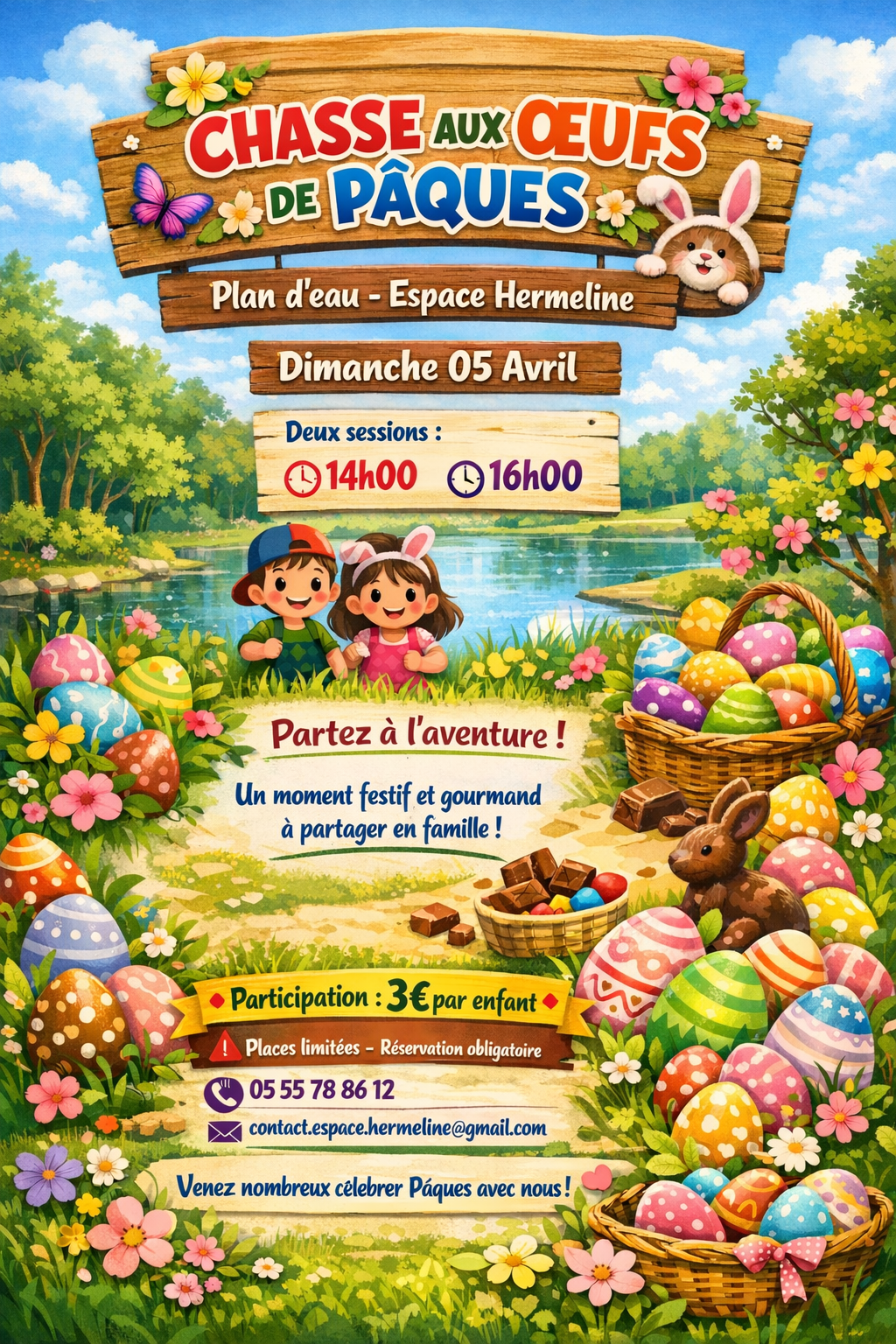 L'équipe de l'Espace Hermeline organise 2 chasses aux œufs le dimanche 05 avril 2026 à 14h00 et 16h00. Tarif 3€ - places limitées