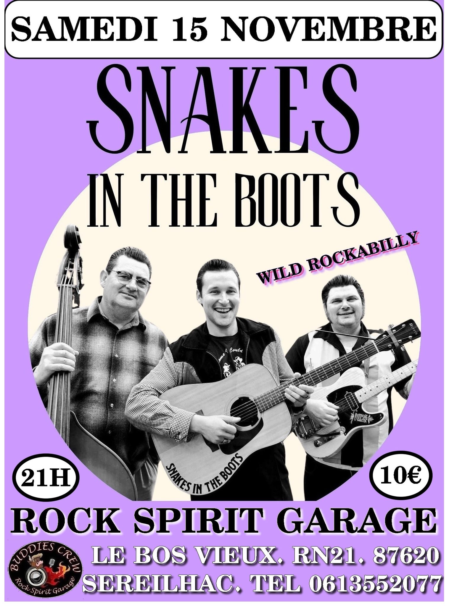 Venez passer une incroyable soirée au Rock Spirit Garage avec le groupe "Snakes in the Boots".