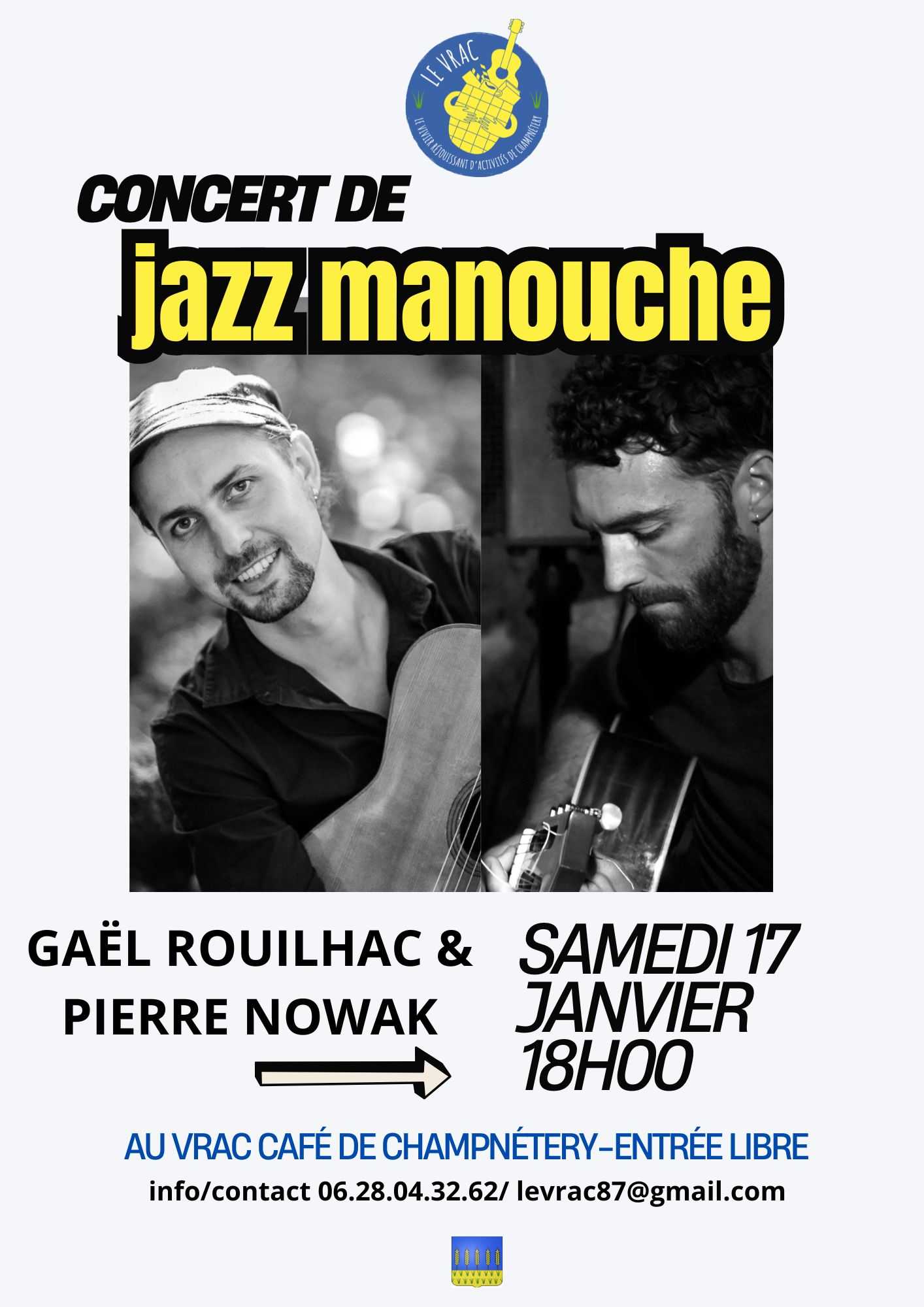 Opening of the Vrac Café with speeches and petits fours around 12 noon. From 2pm, exhibition of photos, articles and works by Champnetery residents "d'hier à aujourd'hui", estimation of the weight of the producers' basket to be won, bread and local products with small groceries. Concert at 6 p.m. with "Claquettes Zazous", results of the weigh-in, local people's "auberge espagnole" (everyone brings a little something to eat) and music at the café.
