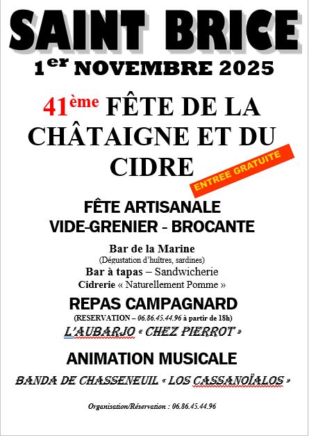 41ème Fête de la Châtaigne. Rejoignez l'équipe pour les célébrer, une tradition ancrée dans la vie de notre club de football et de Saint-Brice-sur-Vienne. Venez en profiter : Vide-grenier, dégustation de châtaignes, un délice incontournable. Dégustation de cidre avec notre partenaire local, la cidrerie "Naturellement Pomme", qui nous accompagne fidèlement chaque année.