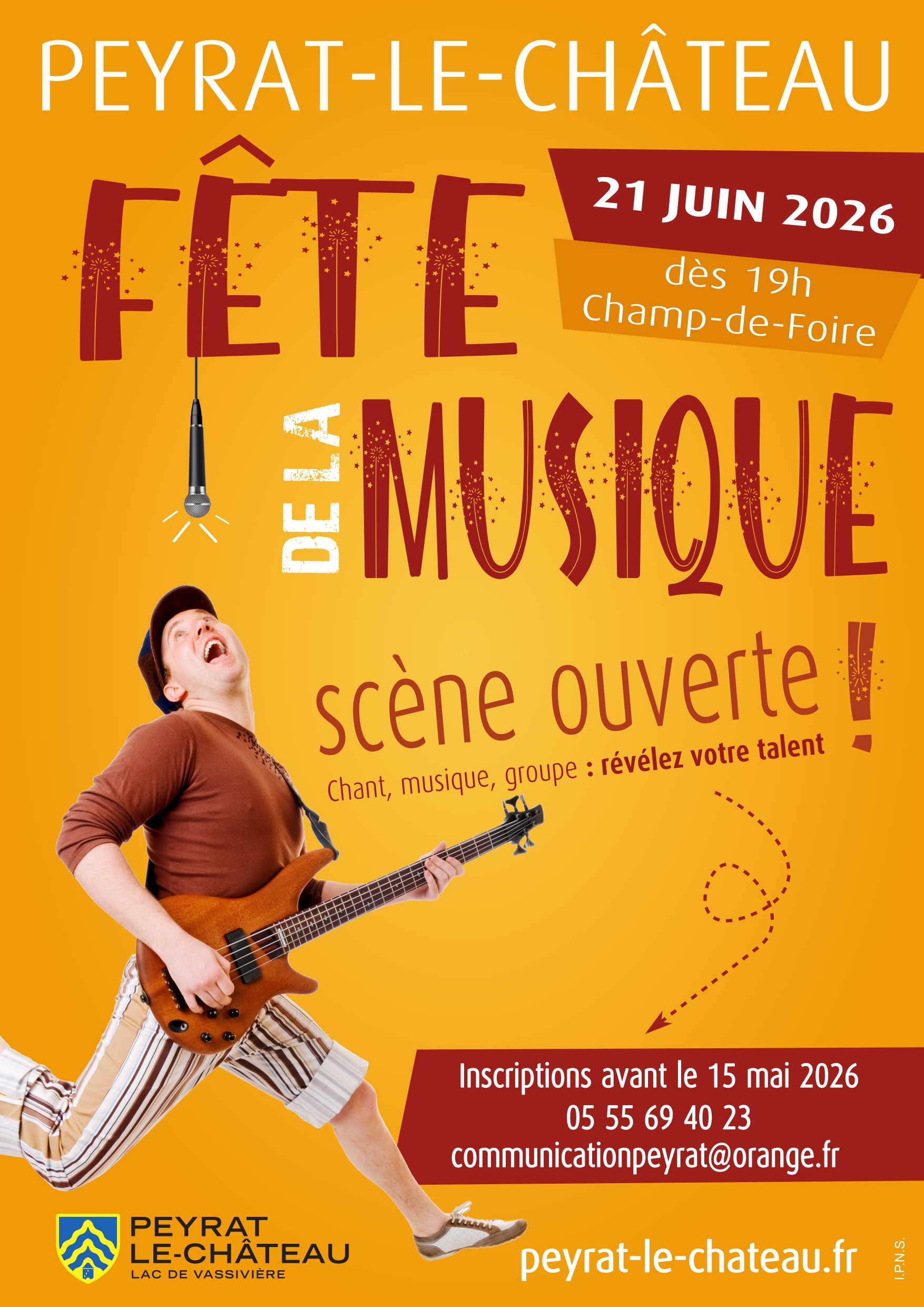 Scène ouverte lors de la fête de la musique, révélez votre talent ! Inscription au 05 55 69 40 23 ou communicationpeyrat@orange.fr avant le 15 mai 2026
