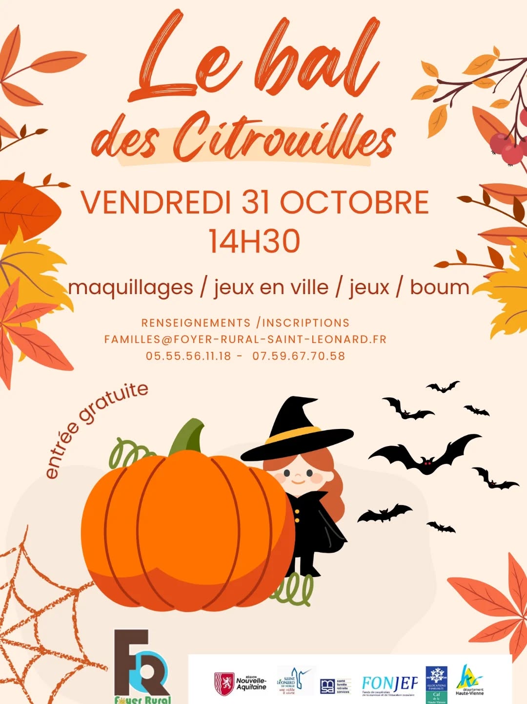 Venez participer au bal des citrouilles avec des maquillages, jeux et déambulation dans le centre ville de Saint-Léonard de Noblat et boom.