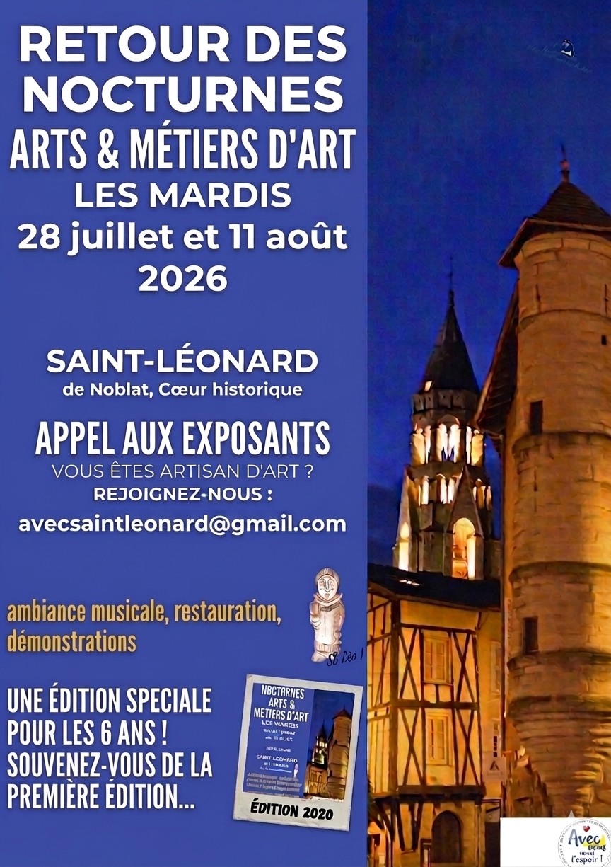 L’association AVEC relance les Nocturnes Art et Métiers d’Art, un événement qui met en valeur les artisans, artistes et créateurs dans le centre historique de Saint-Léonard de Noblat.