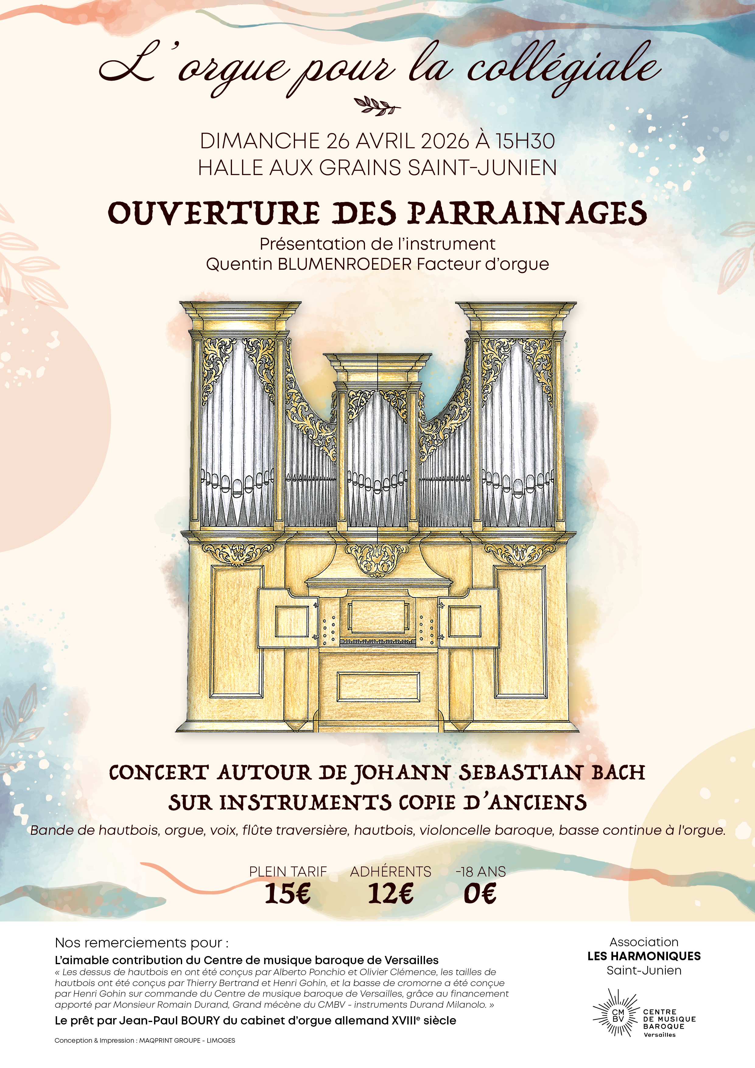 Dans le cadre de l’ouverture du parrainage pour l’orgue de la collégiale, l’association Les Harmoniques propose un concert autour de l’univers de Johann Sebastian Bach.