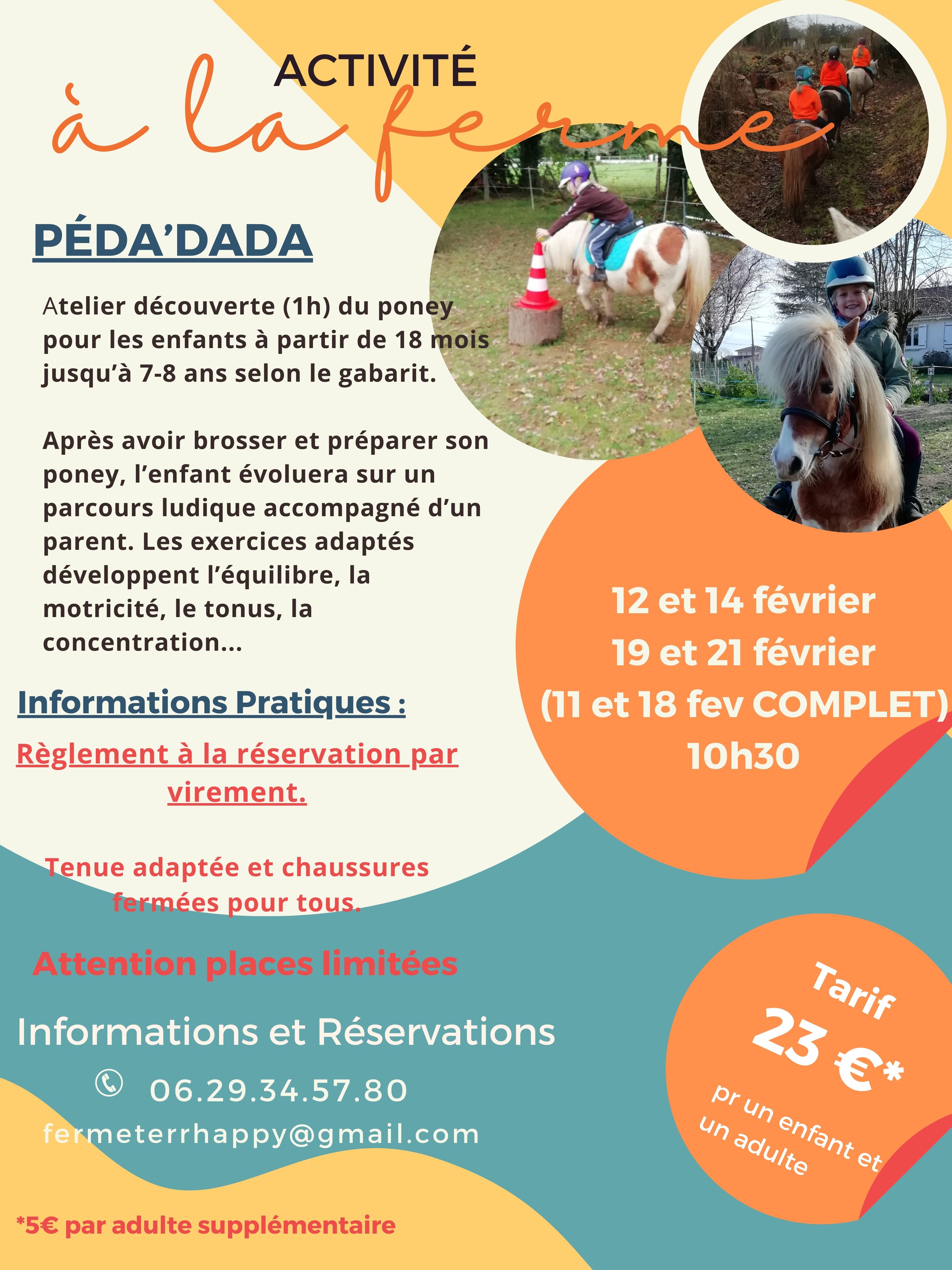 Offrez à vos enfants un moment de douceur et de découverte à la Ferme de la Terr’Happy à Rochechouart ! Ici, les petits cavaliers vivent une première approche du poney en toute confiance, au cœur d’un cadre naturel apaisant. Guidés avec bienveillance, ils apprennent à brosser, préparer et mener leur compagnon à quatre pattes, avant de profiter d’une balade adaptée à leur âge. Entre rires, émerveillement et contact privilégié avec l’animal, cette activité ludique et pédagogique est idéale pour s’initier tout en s’amusant. Une expérience authentique à partager en famille, qui laissera de jolis souvenirs aux enfants comme aux parents !