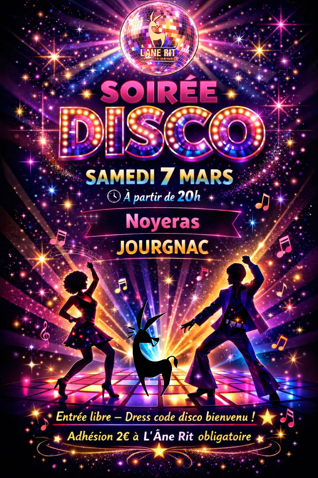Glitter and disco ball atmosphere guaranteed for a 100% groovy evening! Put on your best retro outfits and let your inner dancer do the talking. On the dance floor, the legendary rhythms of disco will thrill all generations in a festive and relaxed atmosphere. Whether you're with friends, family or on your own, come and share a warm moment with us, set to the rhythm of essential hits and infectious energy. Free entry, disco dress code welcome? and to join the party, L'Âne Rit membership (2?) is required. Ready to shine in the spotlight?