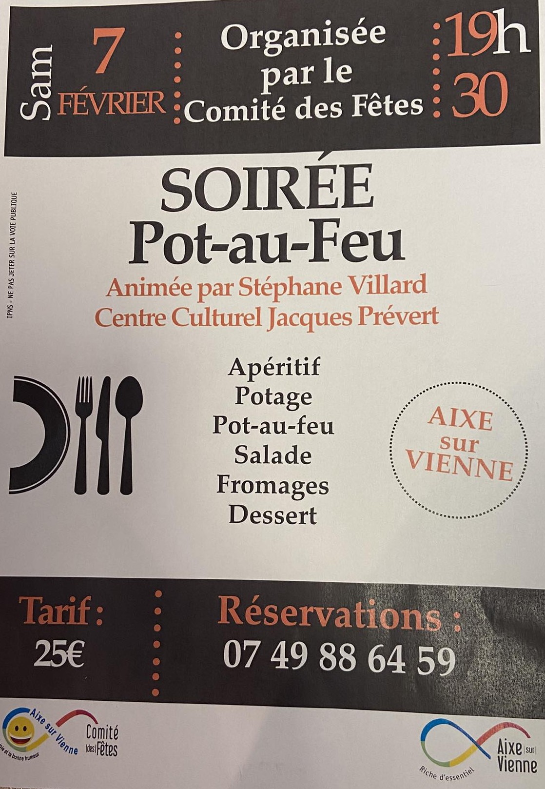 Pot-au-feu evening organized by the Comité des Fêtes d'Aixe-sur-Vienne at the Centre Culturel Jacques Prévert.
