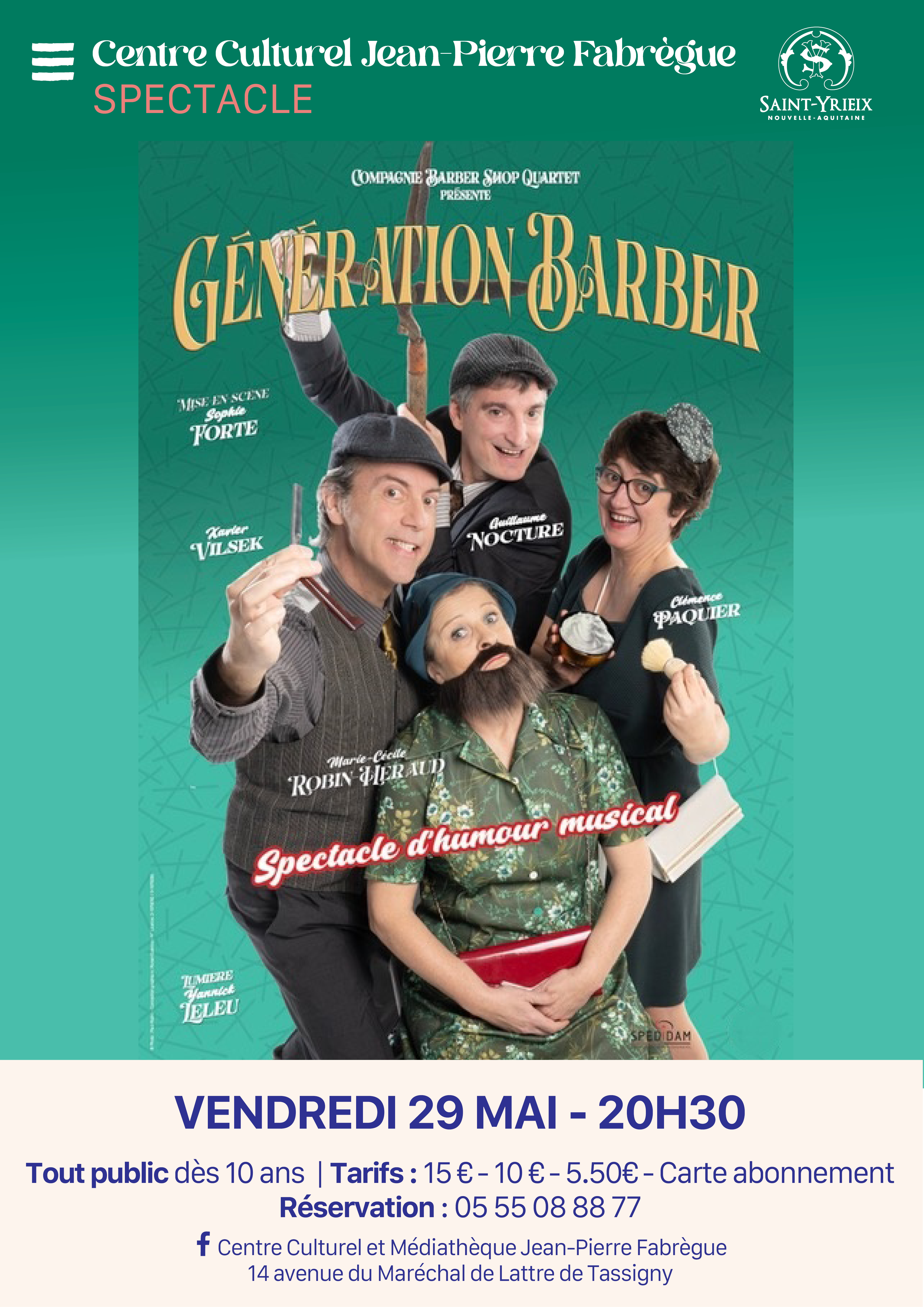 Génération Barber is a sparkling tribute to the famous Barbershop musical style, revisited in French with brio and mischief. Buoyed by exceptional vocal mastery, excellent sound effects, a unique timbre and chiselled, literary and irresistibly funny lyrics, this vocal quartet will enchant you and take you on a journey into their surprising universe.