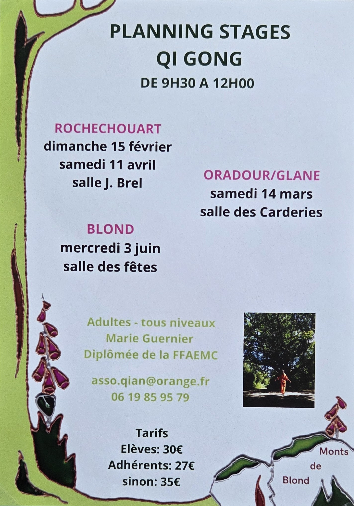 Le stage, encadré par une professeure diplômée, alternera des moments dynamiques et calmes, une pratique en salle ou en extérieur.