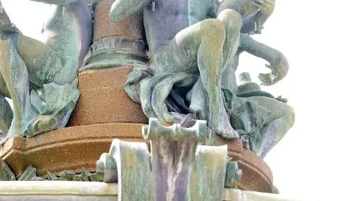 This fountain, created between 1892 and 1893, is a unique example of pink granite, bronze and porcelain. It was designed by Gennuys, deputy director of the Ecole des Arts Décoratifs in Paris and a friend of the director of the Ecole Nationale in Limoges. The high-fired porcelain and bowl come from the Guérin factory, responsible for the ceramics in the Halles centrales. Four boys embody the different phases of the porcelain industry: draftsman, molder, sculptor and decorative painter.