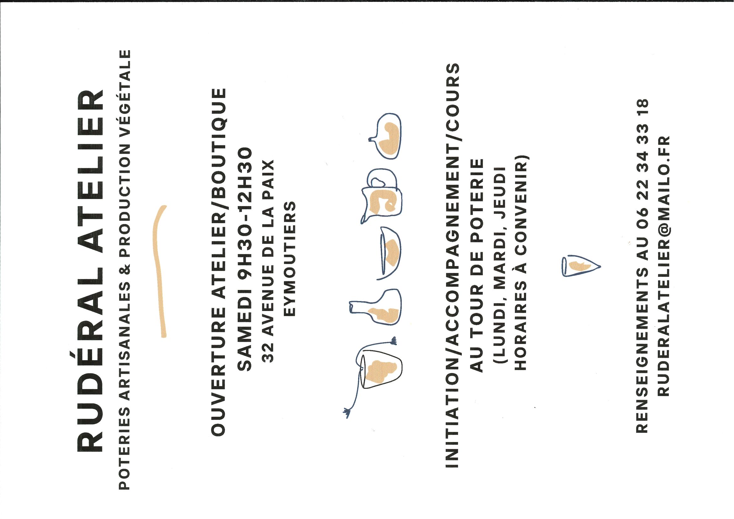 Ouvert depuis fin 2024 à Eymoutiers, rudéral atelier propose des poteries en grès à usage ornemental, domestique et horticole, complétées pour certaines par une production végétale. Des ateliers seront également programmés durant l'année afin de s'initier à la pratique du tournage et du modelage.