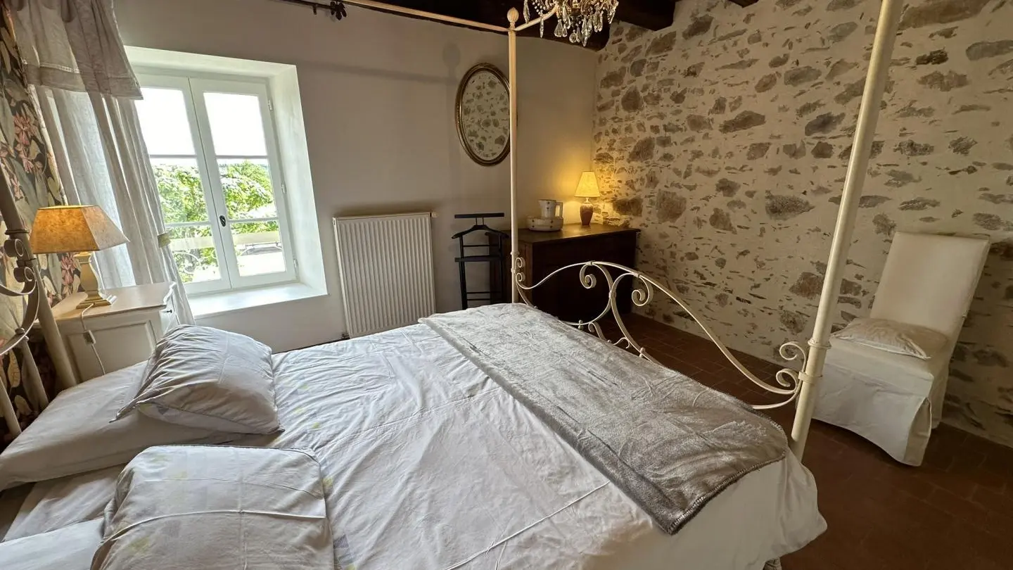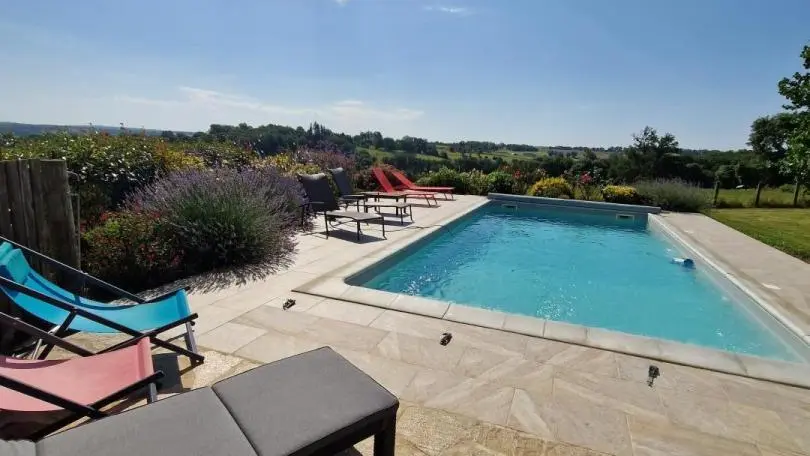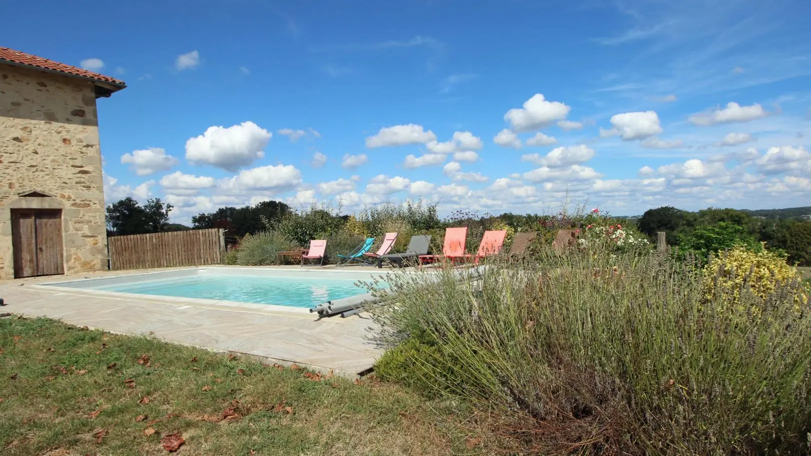 Beautiful, detached 18th-century manor house opening onto a large lawn with flowers and shrubs. Private heated pool (9x4), open from May 18 to September 28 (weather permitting). Wide view over the rolling meadows of the Parc Naturel Périgord Limousin.