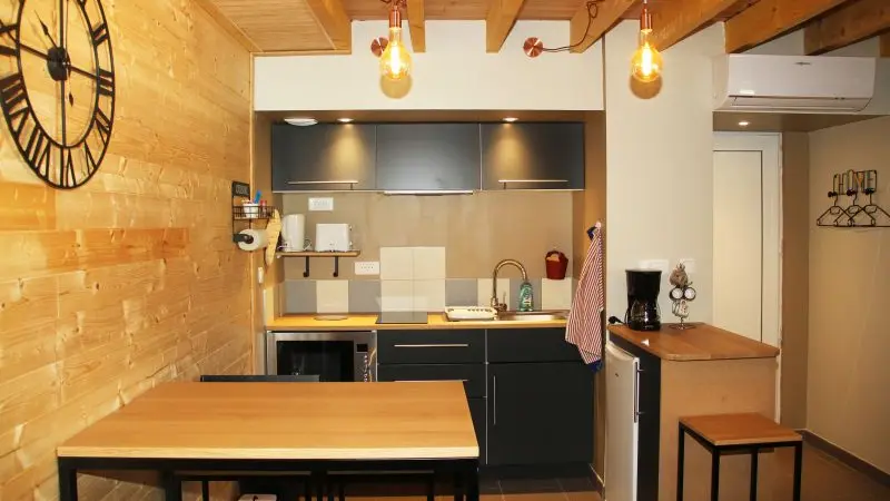 Adjoining the owners' house, attractive T3 for long and medium-term stays. Just 3 minutes from the A20 motorway, in a quiet, leafy location. Sleeps four adults. A double bed (2 people) plus a single bed (90cm) upstairs and a sofa bed (120cm for one person) on the first floor.